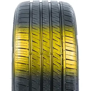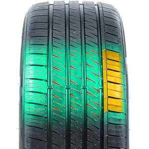The asymmetric ribbed pattern, along with the shoulder blocks and the sipe placement, boosts controllability, maneuvering, and braking capabilities.